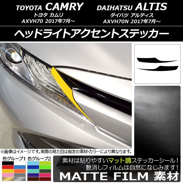 ヘッドライトアクセントステッカー マット調 トヨタ/ダイハツ カムリ/アルティス XV70系 2017年07月〜 色グループ2 入数:1セット(2枚) AP-CFMT3062