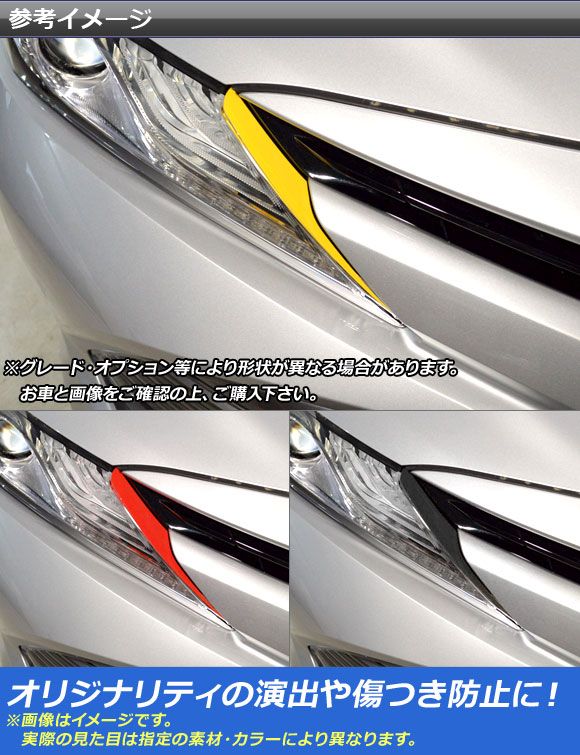 ヘッドライトアクセントステッカー マット調 トヨタ/ダイハツ カムリ/アルティス XV70系 2017年07月〜 色グループ2 入数:1セット(2枚) AP-CFMT3062 色グループ2: パープル ブラウン ボルドー マゼンタ ダークグリーン ダークブルー ライトイエロー ライトグリーン ライトブルー シアン