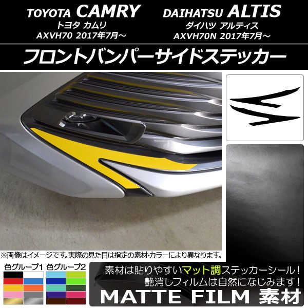 フロントバンパーサイドステッカー トヨタ/ダイハツ カムリ/アルティス XV70系 2017年07月〜 マット調 色グループ1 AP-CFMT3069 入数:1セット(2枚)