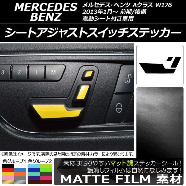 シートアジャストスイッチステッカー マット調 メルセデス・ベンツ Aクラス W176 2013年01月〜 色グループ1 AP-CFMT2817 色グループ1: ブラック ホワイト レッド ブルー イエロー オレンジ ピンク グレー ゴールド シルバー