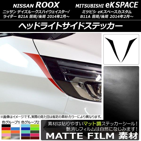 ヘッドライトサイドステッカー マット調 ニッサン/ミツビシ デイズルークス/eKスペースカスタム B21A B11A 色グループ1 入数:1セット(2枚) AP-CFMT3515
