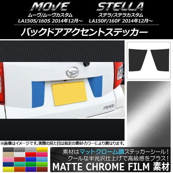 バックドアアクセントステッカー マットクローム調 ムーヴ/カスタム,ステラ/カスタム LA150/LA160 選べる20カラー 入数:1セット(2枚) AP-MTCR1192