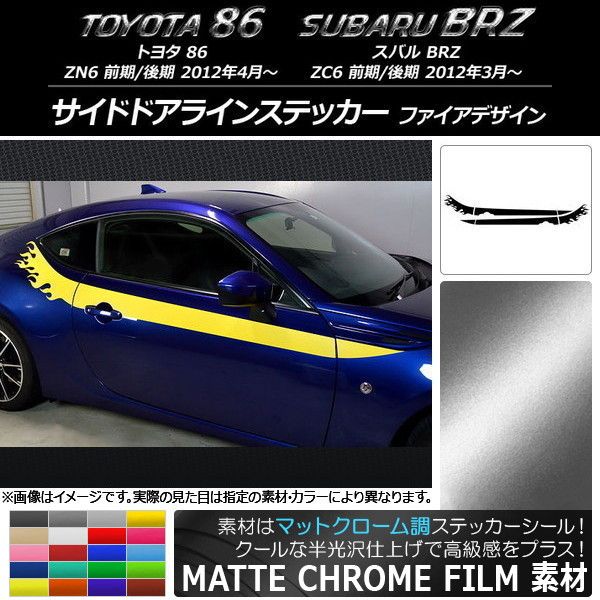 AP サイドドアラインステッカー マットクローム調 ファイアデザイン トヨタ/スバル 86/BRZ ZN6/ZC6 前期/後期 選べる20カラー AP-MTCR2278 入数:1セット(4枚)