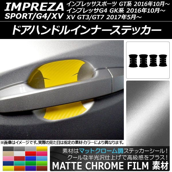 ドアハンドルインナーステッカー マットクローム調 スバル インプレッサスポーツ/G4/XV GT/GK系 選べる20カラー 入数:1セット(4枚) AP-MTCR2048