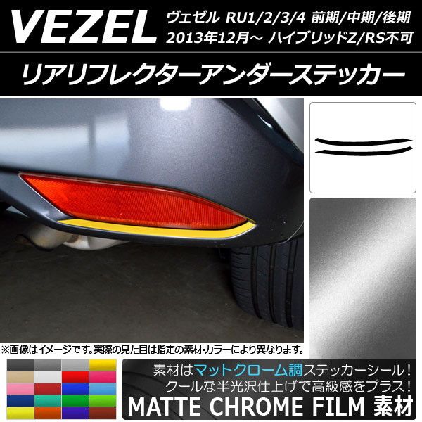 リアリフレクターアンダーステッカー マットクローム調 ホンダ ヴェゼル RU1/2/3/4 2013年12月〜 選べる20カラー 入数:1セット(2枚) AP-MTCR3452
