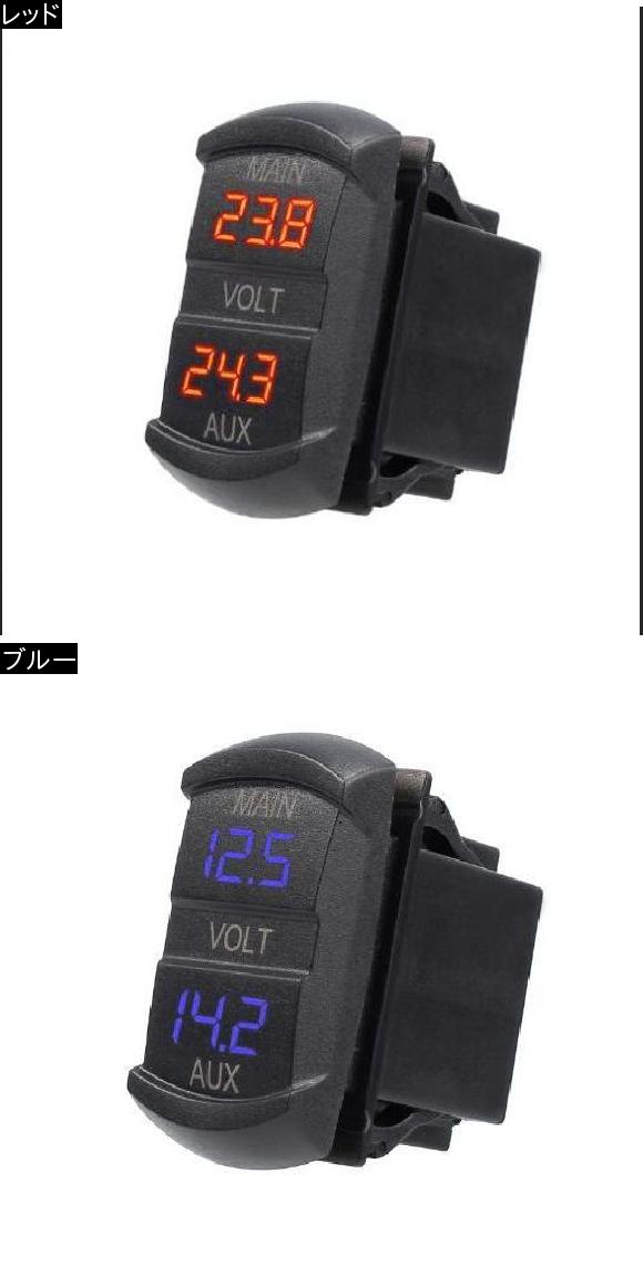 AL 10-60 V デュアル電圧計ボルトゲージ ブルー レッド LED デジタルパネルバッテリモニタ バッテリー電圧計テスター 選べる2カラー レッド・ブルー AL-BB-7225