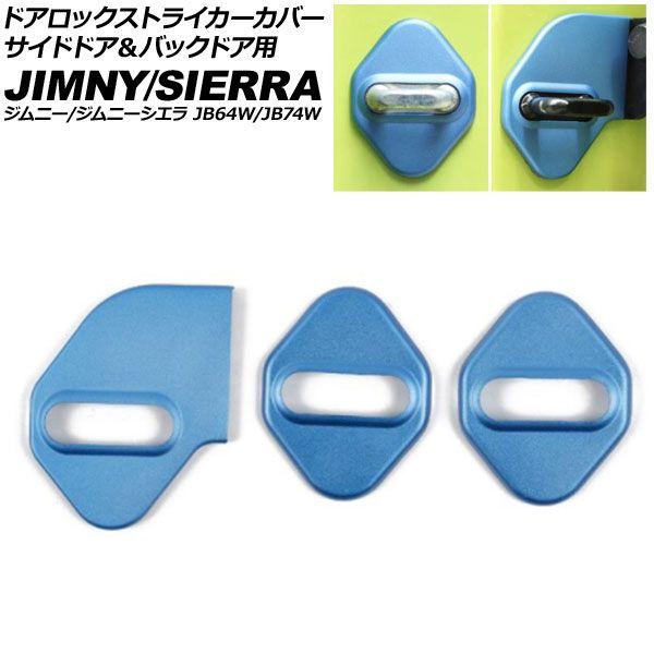 ドアロックストライカーカバー サイド&バック用 スズキ ジムニー/シエラ JB64W/JB74W 2018年07月〜 ブルー アルミ合金 入数:1セット(3個) AP-IT1473-AB-BL