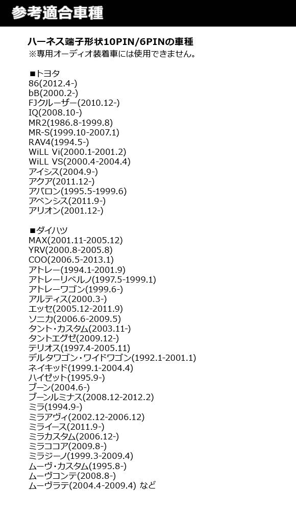 10PIN・6PINの車種に対応します。