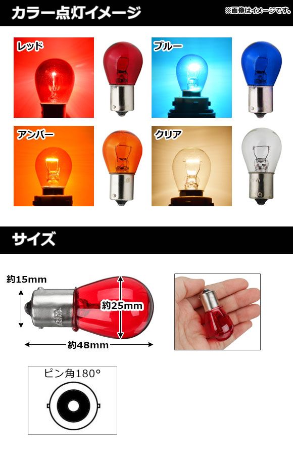 サイズ/タイプ:S25/BA15S ピン角180° シングル球
