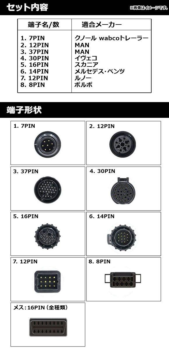 OBD2変換ハーネスセット トラック用 入数:1セット(8個) AP-EC566 OBD2変換コネクター 変換ハーネス 変換ハーネスセット 変換コネクター 変換コネクターセット KNORR MAN IVECO SCANIA MERCEDES BENZ RENAULT VOLVO クノール クノールブレムゼ マン エム・アー・エヌ イベコ イヴェコ スカニア メルセデス ベンツ ルノー ボルボ 7PIN 12PIN 37PIN 30PIN 16PIN 14PIN 8PIN アダプター トラック 大型 大型車 診断ツール スキャンツール OBD ODB2 診断 スキャン 故障診断 ハーネス ケーブル コネクター インターフェイス インターフェース アダプタ コネクタ 変換 接続 診断機 スキャナー 故障 故障診断機 4570024390990 エンジン 原動機 チェックランプ 電気系統 automobile motorcar オートモービル モーターカー カー 車 自動車 車両 504238120