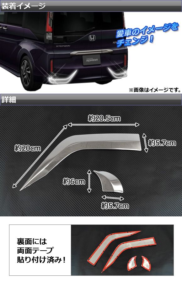 AP リフレクターガーニッシュ シルバー ステンレス AP-EX528 入数:1セット(4個) ホンダ ステップワゴン(スパーダ含む) RP系 2015年04月〜