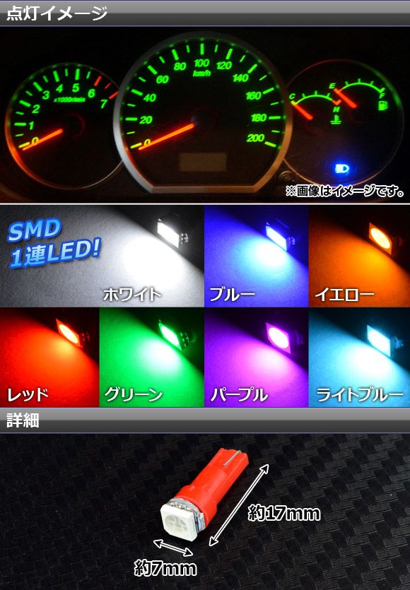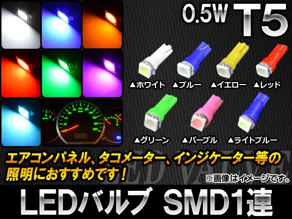 457821440 ホワイト AP-LED-T5-1SMD-WH ブルー AP-LED-T5-1SMD-BL イエロー AP-LED-T5-1SMD-YE レッド AP-LED-T5-1SMD-RD グリーン AP-LED-T5-1SMD-GR パープル AP-LED-T5-1SMD-PU ライトブルー AP-LED-T5-1SMD-LBL 4562430402114 4562430402121 4562430402138 4562430402145 4562430402152 4562430402169 4562430402176 LED バルブ ライト ランプ エアコンパネル タコメーター スピードメーター メーター インジケーター インジケーターランプ スイッチ インパネ ダッシュボード オーディオ ルームランプ フットランプ ライセンスランプ シガー 車内 パーキングライト サイドランプ 速度計 12V 12ボルト 0.5W 0.5ワット 1発 1個 赤 青 水色 紫 黄 緑 白 アンバー ウェッジ ウエッジ 電球 電灯 照明 点灯 ドレスアップ イルミネーション カー 車 自動車 カラー WHITE RED BLUE YELLOW GREEN PURPLE LIGHT