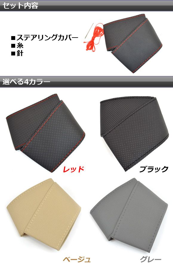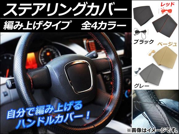 ステアリングカバー 編み上げタイプ 汎用 PUレザー 選べる4カラー AP-HC-STITCH カラー: ブラック レッド グレー ベージュ