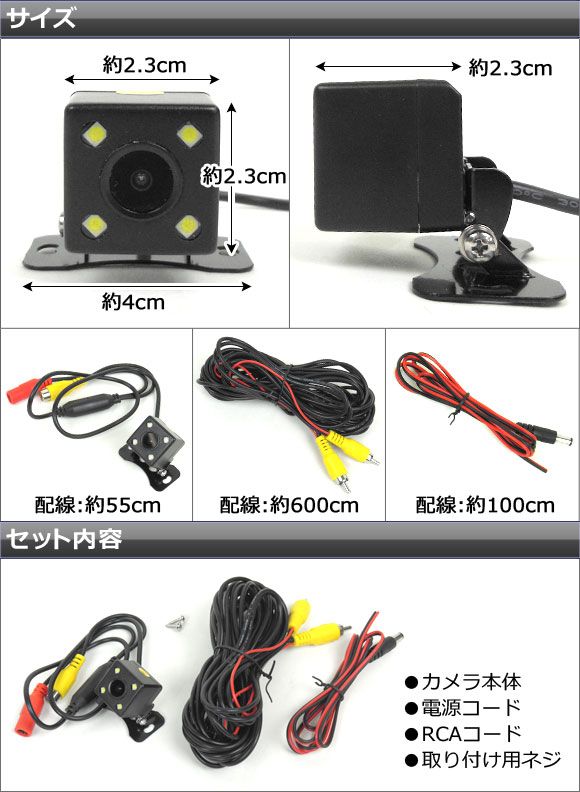 セット内容:カメラ本体、電源コード、RCAコード、取り付け用ネジ