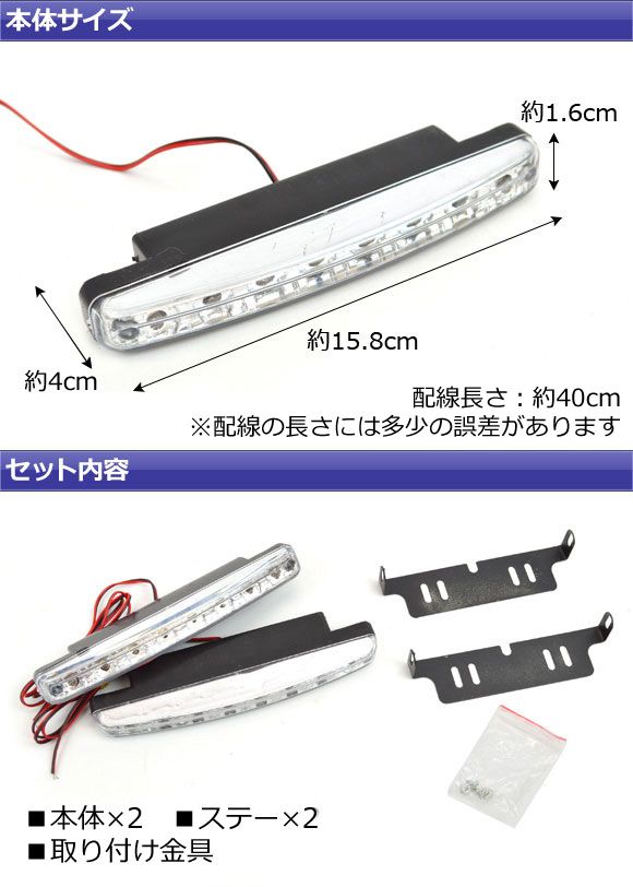 AP LEDデイライト ホワイト 片側8連 汎用品 AP-8LED-DL 入数:1セット(左右)