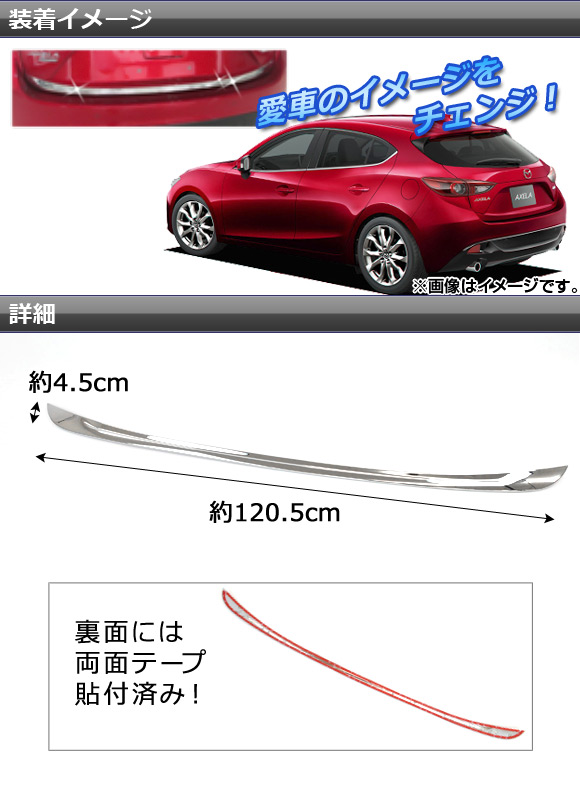 バックドアスカート マツダ アクセラ スポーツ BM系 2013年11月〜 ABS製 鏡面仕上げ APSINA-AXELA021 BM5FS BM5AS BMEFS BM2FS バックドアモール アンダートランクガーニッシュ バックドアアンダーモール バックドアガード バックドア AXELA SPORT ガーニッシュ カバー ガード 外装 ドレスアップ エクステリア メッキ パーツ 銀 クローム シルバー chrome silver automobile motorcar オートモービル モーターカー カー 車 自動車 車両 4562430452218 MAZDA 454219700