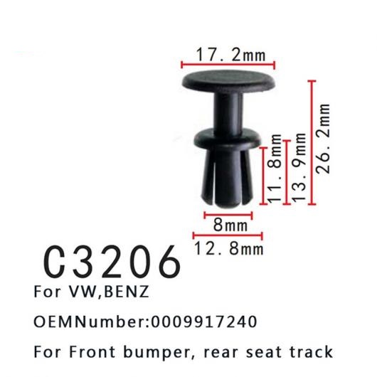 AL インテリア リアシート トラック クリップ フロント バンパー ファスナー 適用: BMW E36 E46 E38 E39 アウディ/AUDi A3 A4 Q3 Q5 N105835019B9 A0009917240 50ピース AL-MM-0697