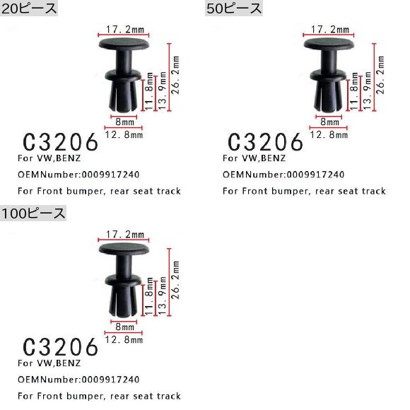 インテリア リアシート トラック クリップ フロント バンパー ファスナー 適用: BMW E36 E46 E38 E39 アウディ/AUDi A3 A4 Q3 Q5 N105835019B9 A0009917240 50ピース AL-MM-0697 AL