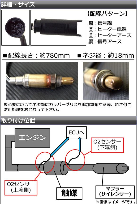 ※O2センサーはエンジンタイプや排気レイアウトにより取り付け位置が異なります。