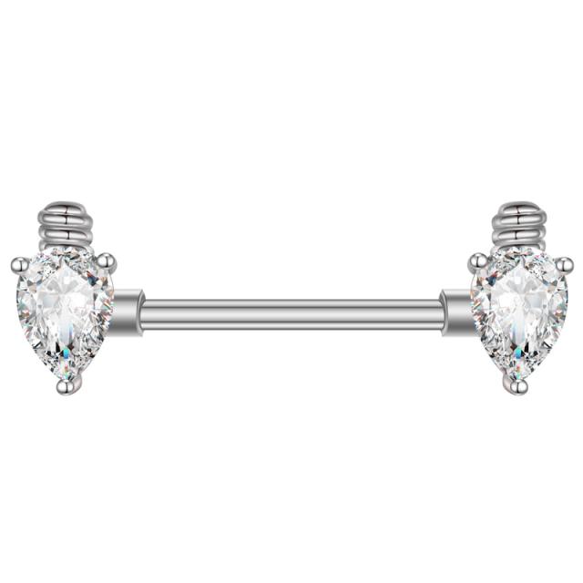 ヘビの頭のモチーフにクリスタルのキュービックジルコニアをセットした14ゲージのストレートバーベル型の乳首用ボディピアス。