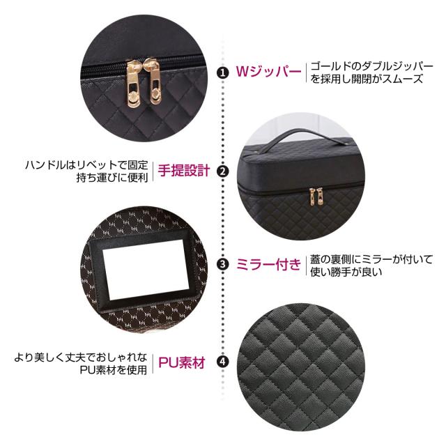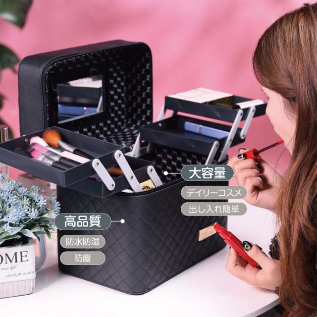 メイクボックス 大容量 鏡付き ミラー付き コスメボックス 化粧品 ケース コスメケース 化粧ボックス 化粧箱 メイク コスメ 収納 バッグ おしゃれ 持ち運び make-box