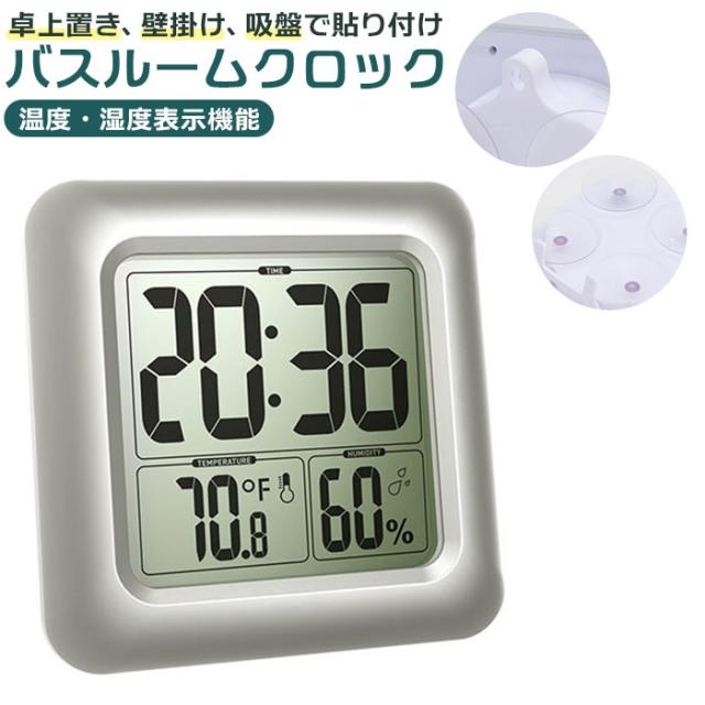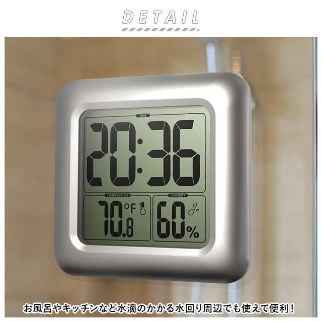 バスクロック 通販 お風呂 風呂 時計 デジタル デジタル置時計 バスルームクロック 防滴時計 防滴 デジタル時計 デジタル温湿度計 置時計 温度湿度計 置き時計 シャワー時計 シャワークロック 水回り 壁掛け 吸盤 温度計 温度 湿度計 湿度 おふろ バスタイム 便利グッズ
