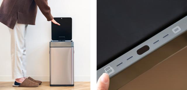 手を触れずに開けられる、USB充電式のスリムなセンサーゴミ箱