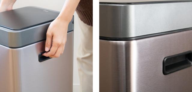スリムな見た目で場所をとらないゴミ箱です。キッチンの隙間や部屋の隅、デスクの周りに並べて置いてもすっきり収まります。分別に便利な分別用ステッカーも付いています。※左から30L、20Lです。