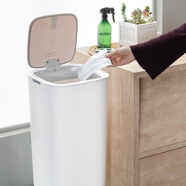 帰宅後すぐ、ゴミ箱のフタを触らずに使い捨てマスクを捨てることができます。不要な接触を控えることができるため衛生的です。