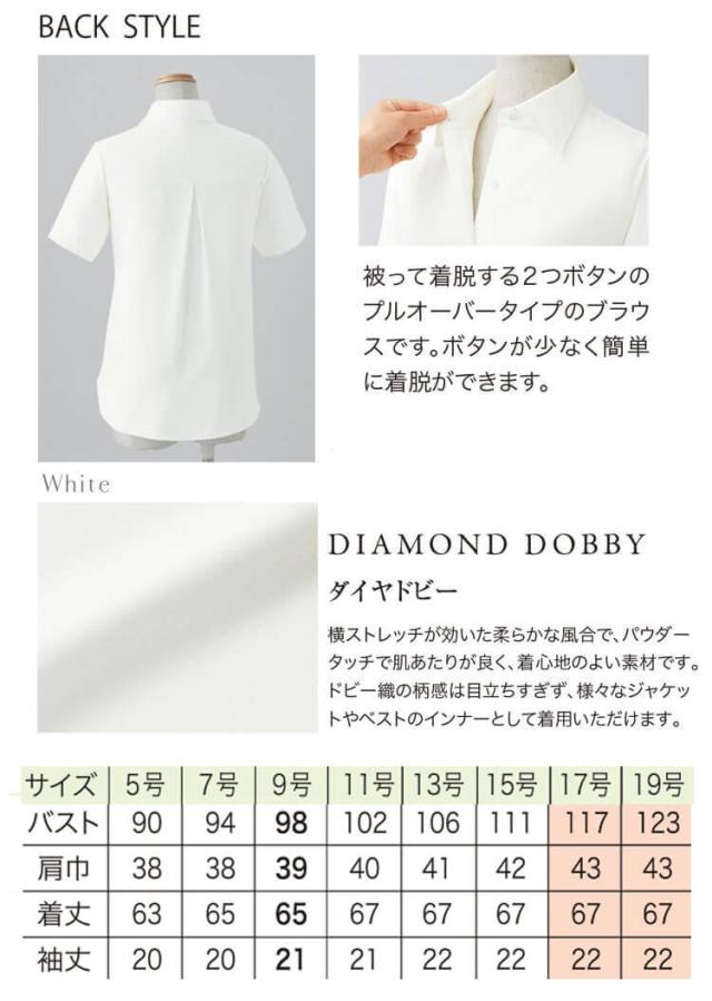 おもてなし オフィス 制服 en joie アンジョア 半袖ブラウス(プルオーバータイプ) 06235 サイズ17号・19号