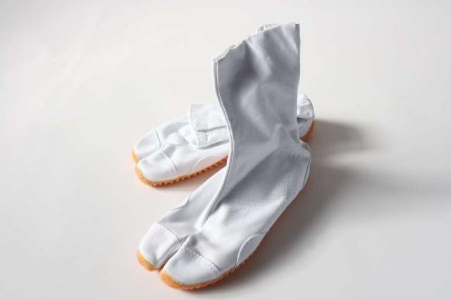 クッション材入り足袋で、足にかかる負担を軽減します。