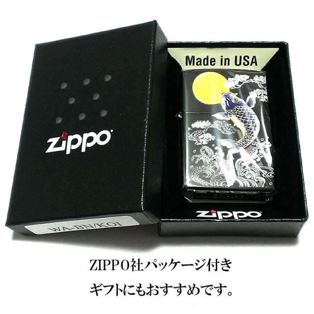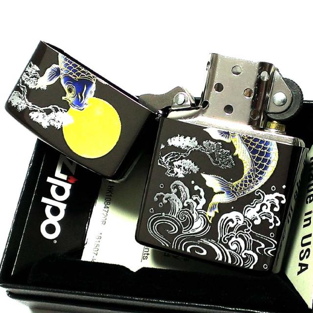 ZIPPO 和柄 ライター 鯉 フルカラー ジッポ 綺麗 立体的 おしゃれ ニッケルブラック メンズ 美しい レディース ギフト