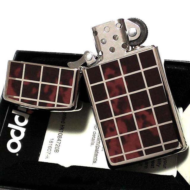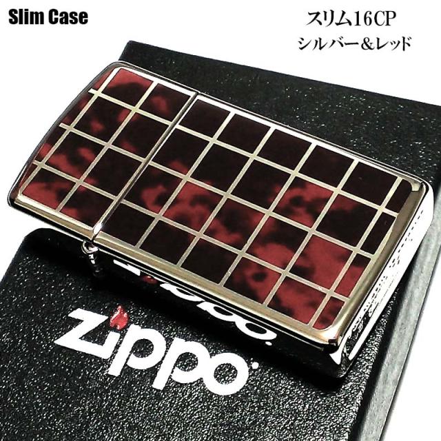 ZIPPO スリム ジッポ ライター シルバー&レッド チェック マーブル柄 かっこいい おしゃれ メンズ レディース 女性