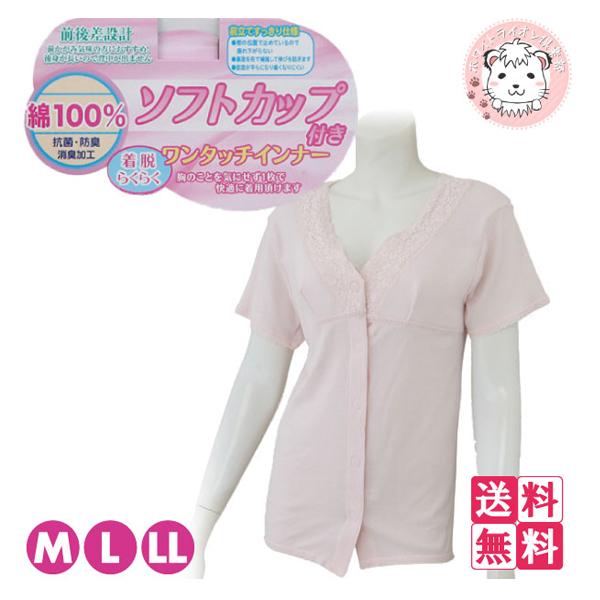 ワンタッチインナー 婦人 ソフトカップ付 前開き 3分袖肌着 ワンタッチテープ式 M/L/LL