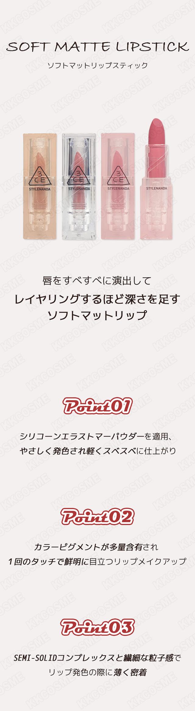 3ce スタイルナンダ ソフトマットリップスティック イエベ ブルべ リップマット 単品 韓国コスメ 正規品