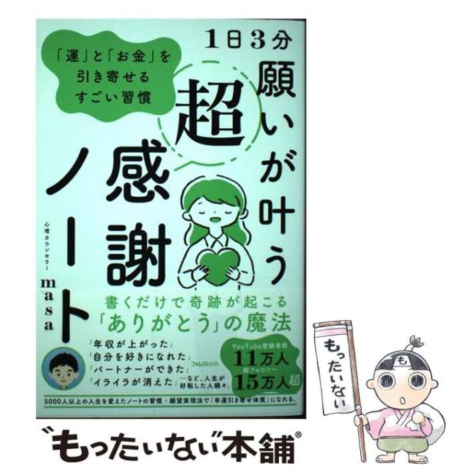 【中古】 1日3分 願いが叶う超感謝ノート 「運」と「お金」を引き寄せるすごい習慣 / 心理カウンセラーmasa / フォレスト出版 [単行本(ソフトカバー)]【メール便送料無料】