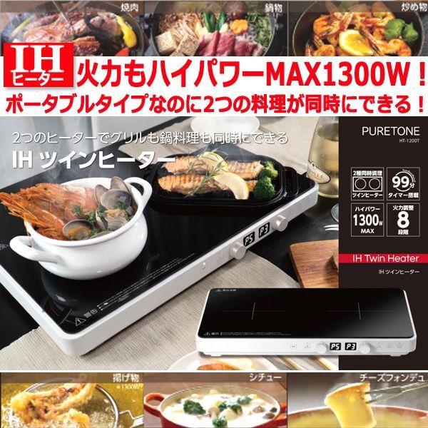 ハイパワー2つのヒーターで1300W!PURETONE[ピュアトーン]IHツインヒーター (焼肉 おでん チャーハン カレー ステーキ ラーメン)