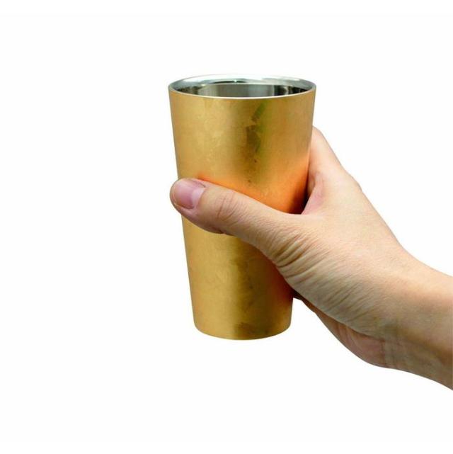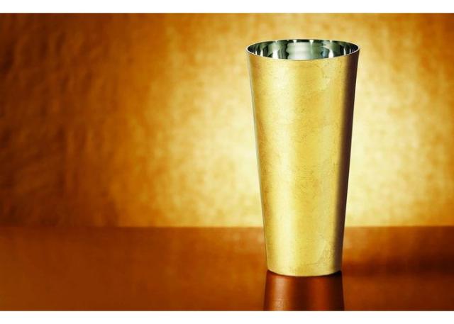 熟練された「職人の磨きの技」が、ビールや炭酸飲料の旨味を引き出します。日本が誇る数多くの匠の技の中から、ものづくりの融合を目指し、新潟県「燕市の研磨技術」×石川県「金沢箔&拭き漆」×福井県「越前和紙」をコラボレーションした逸品です。内側は螺旋状に磨き上げ、ビールを注ぐとクリーミーに泡立ちます。外側は金沢箔で加飾し、トップコートに拭き漆仕上げを行っており、金沢箔の優美さを極限まで引き出した、高級感漂う仕上がりになっています。