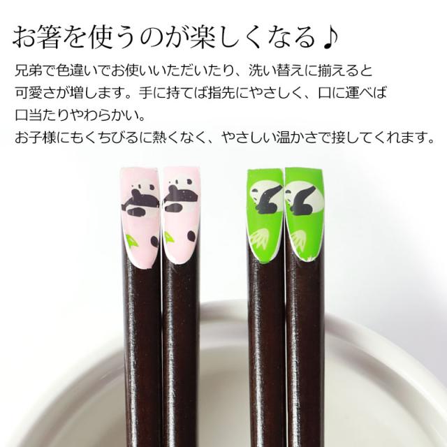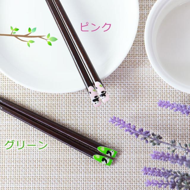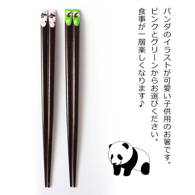 パンダのイラストが可愛い子供用のお箸です。ピンクとグリーンからお選びください。