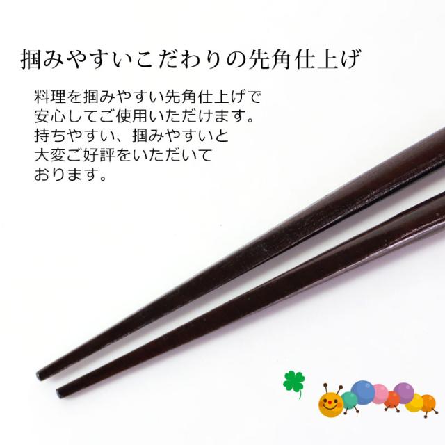 箸先が角ばった「先角加工」が施され、細かなものも掴みやすく、すべりにくくなっています。