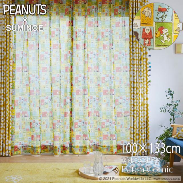 スヌーピー レースカーテン 100×133cm ピーナッツ/パッチコミック 1枚入り 洗える SNOOPY PEANUTS 住之江 日本製 P1047 MX