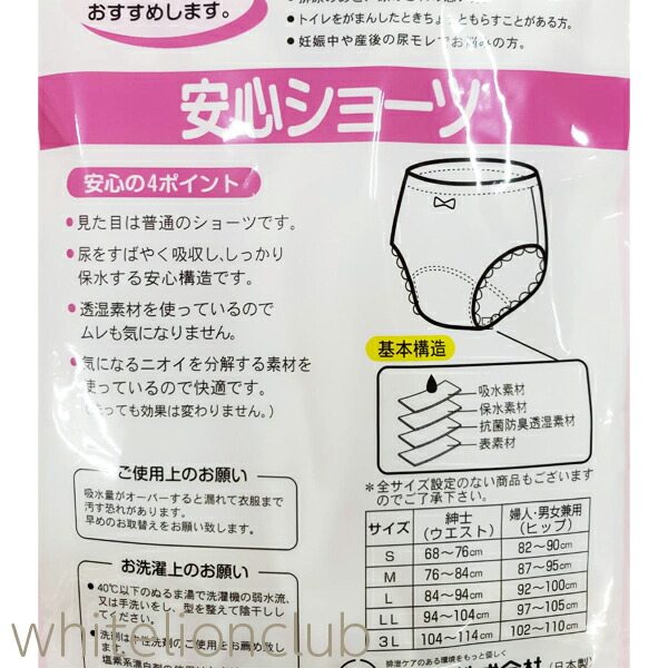 消臭+抗菌加工でモレ・ムレ・ニオイも安心の4層構造。
