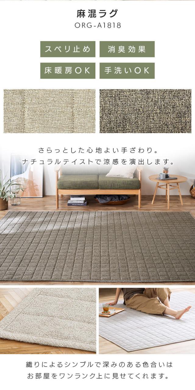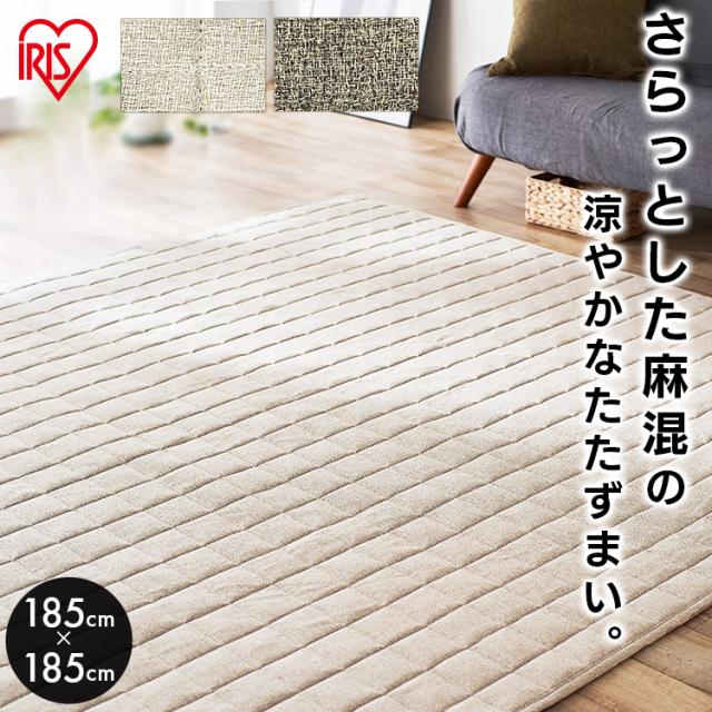 ラグ 夏用 洗える 2畳 ラグ ラグマット マット カーペット 麻混ラグ ORG-A1818 ラグ カーペット 洗える ラグマット手洗いOK 185×185cm ウレタン 敷物 麻混 リネンシンプル 夏ラグ 夏用ラグ サマーラグ アイリスオーヤマ