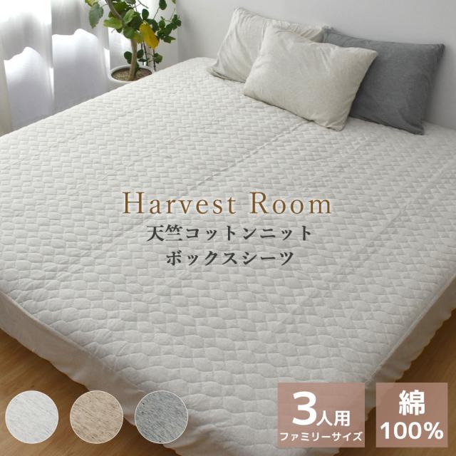 天竺ニット 敷きパッド一体型ボックスシーツ/3人用 200×200×25cm HarvestRoom ハーベストルーム 綿100% コットン 天竺 単品 綿 軽い おしゃれ 着脱簡単 寝具 杢カラー くすみカラー 通年 送料無料 大きいサイズ ボックスシーツ 一体型