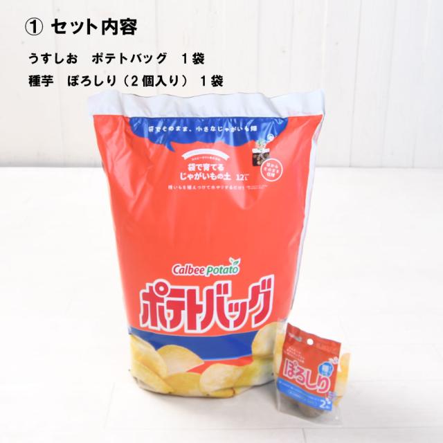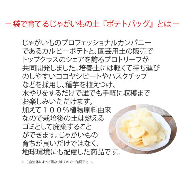 じゃがいも 栽培セット そのまま育てる じゃがいもの土 12L 種芋 土と種芋のセット ジャガイモ 苗 カルビー ポテトバッグ ポテトバック うすしお のりしお ぽろしり 1袋セット 4535885700906 4535885249504
