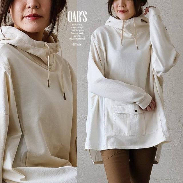 着痩せ パーカー プルオーバー プルパーカー レディース 長袖 ハイネック ミニ裏毛 スウェット しっかり 丈夫 異素材切り替え ワイド ゆったり 楽チン 重ね着 大人 カジュアル メンズライク パティ OAR’S オールズ