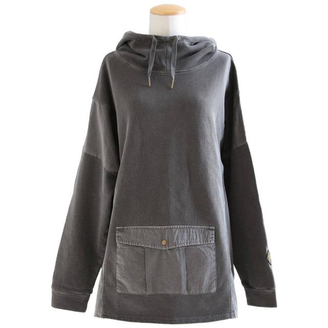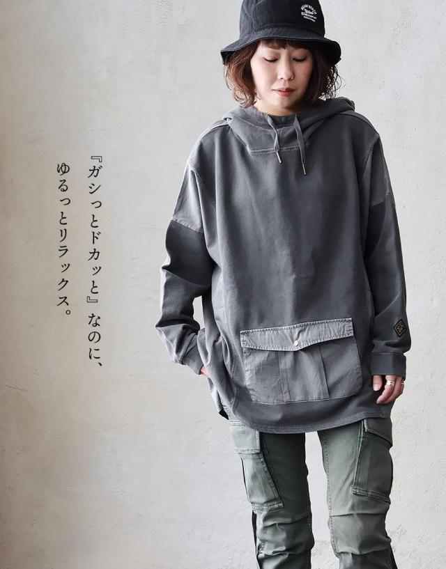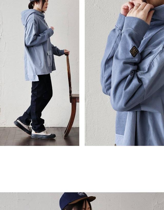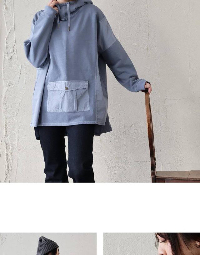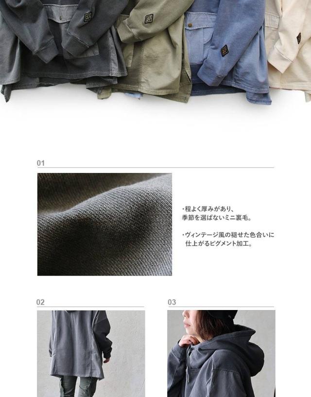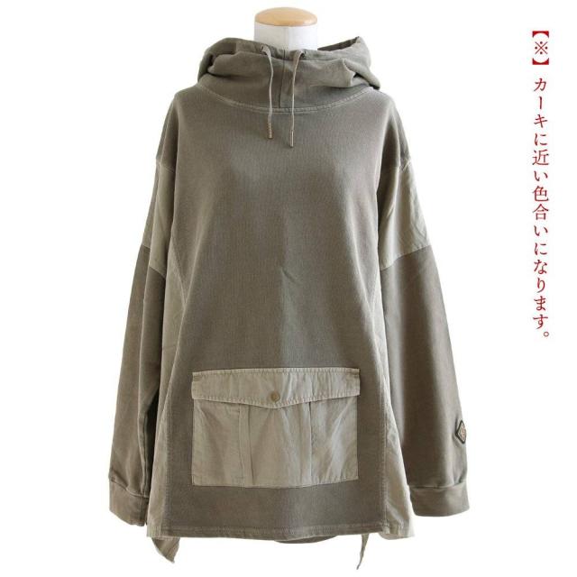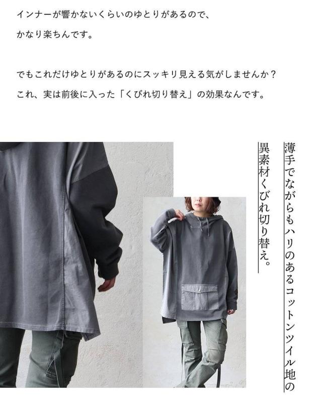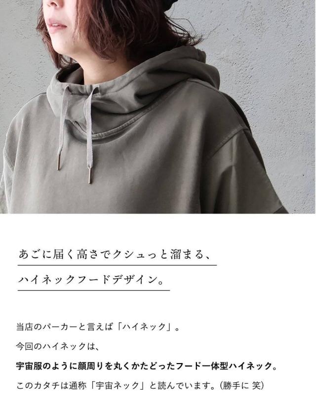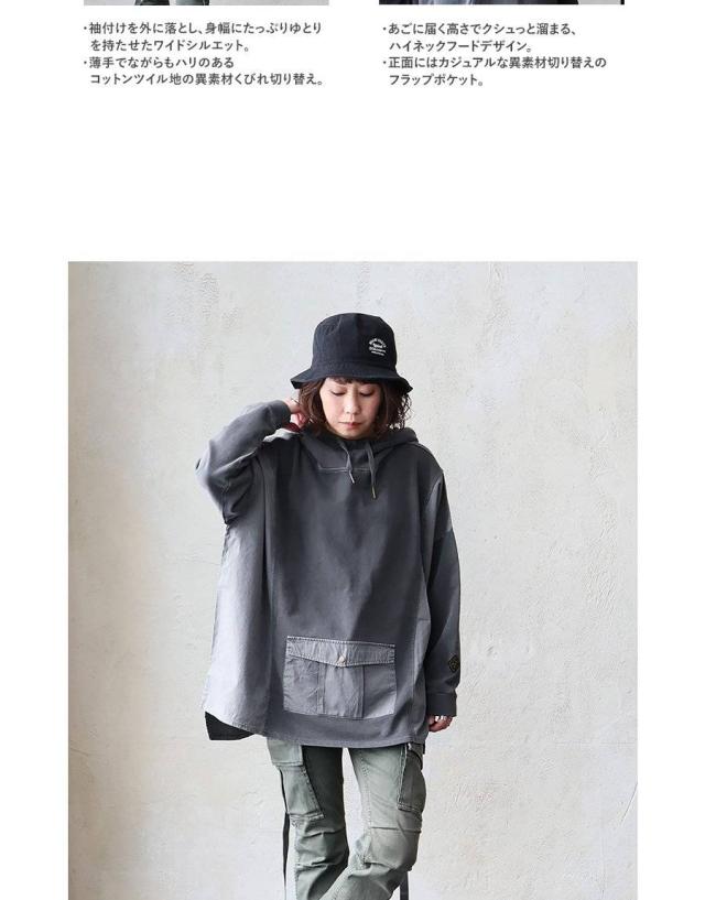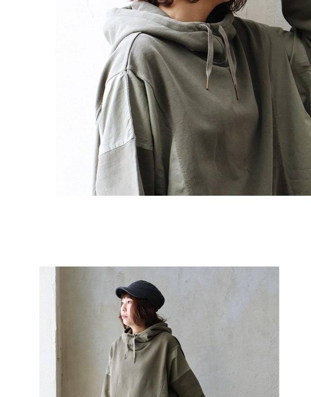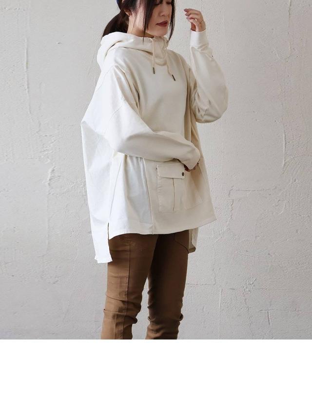 着痩せ パーカー プルオーバー プルパーカー レディース 長袖 ハイネック ミニ裏毛 スウェット しっかり 丈夫 異素材切り替え ワイド ゆったり 楽チン 重ね着 大人 カジュアル メンズライク パティ