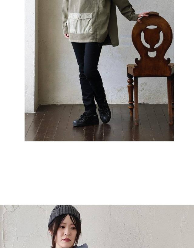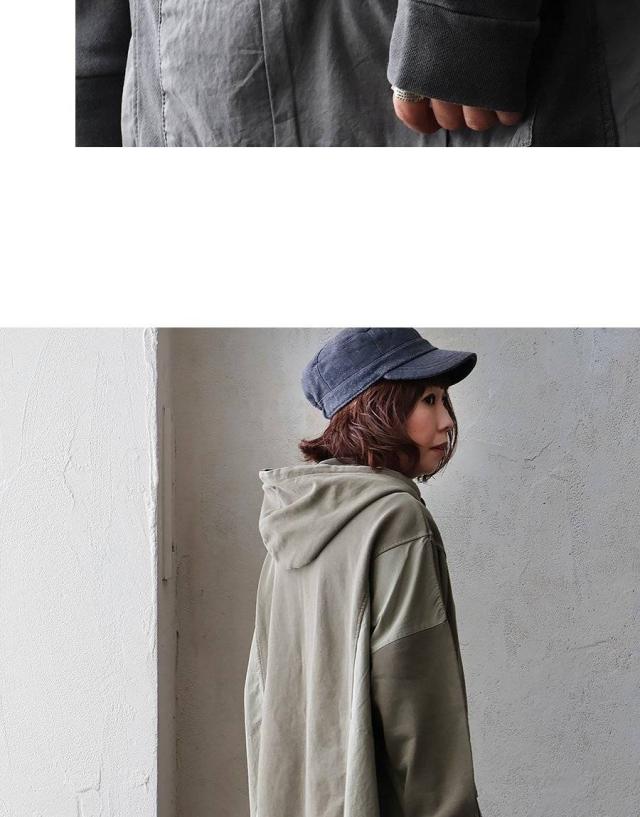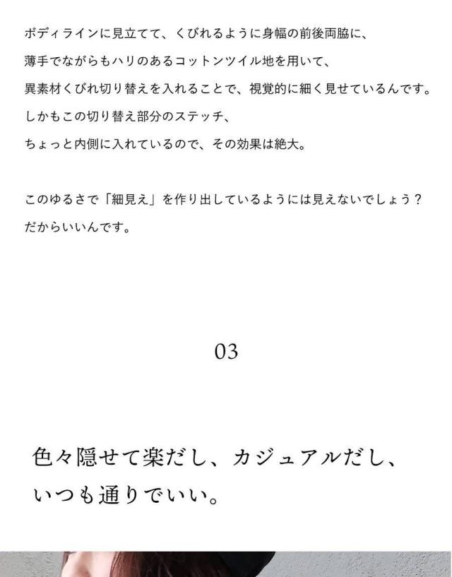 ・薄手でながらもハリのあるコットンツイル地の異素材くびれ切り替え。