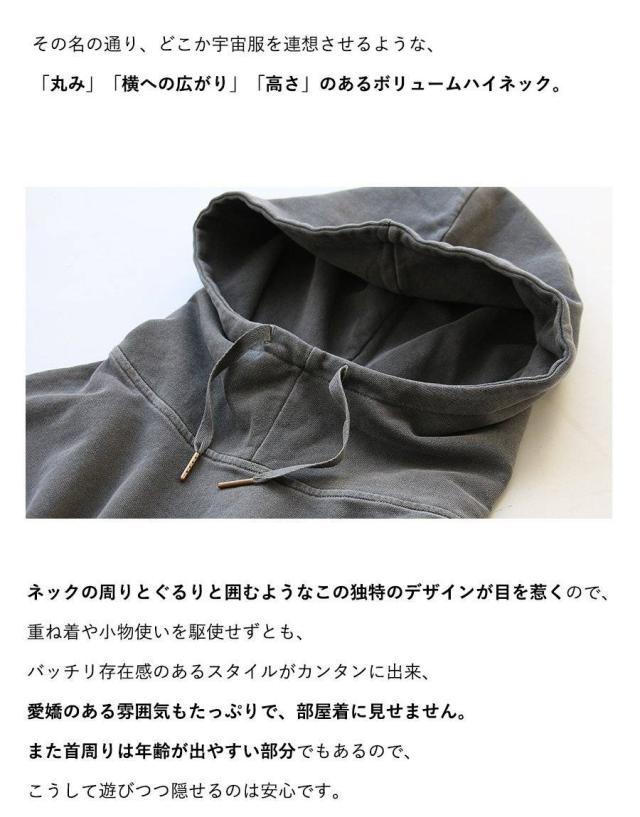・あごに届く高さでクシュっと溜まる、ハイネックフードデザイン。