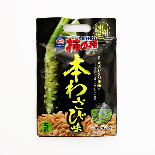 信州限定 亀田の柿の種ピーナッツ入り本わさび味5袋入 信州長野のお土産